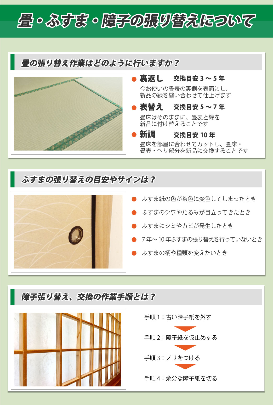 三重郡川越町 畳・襖・障子を張り替える目安について